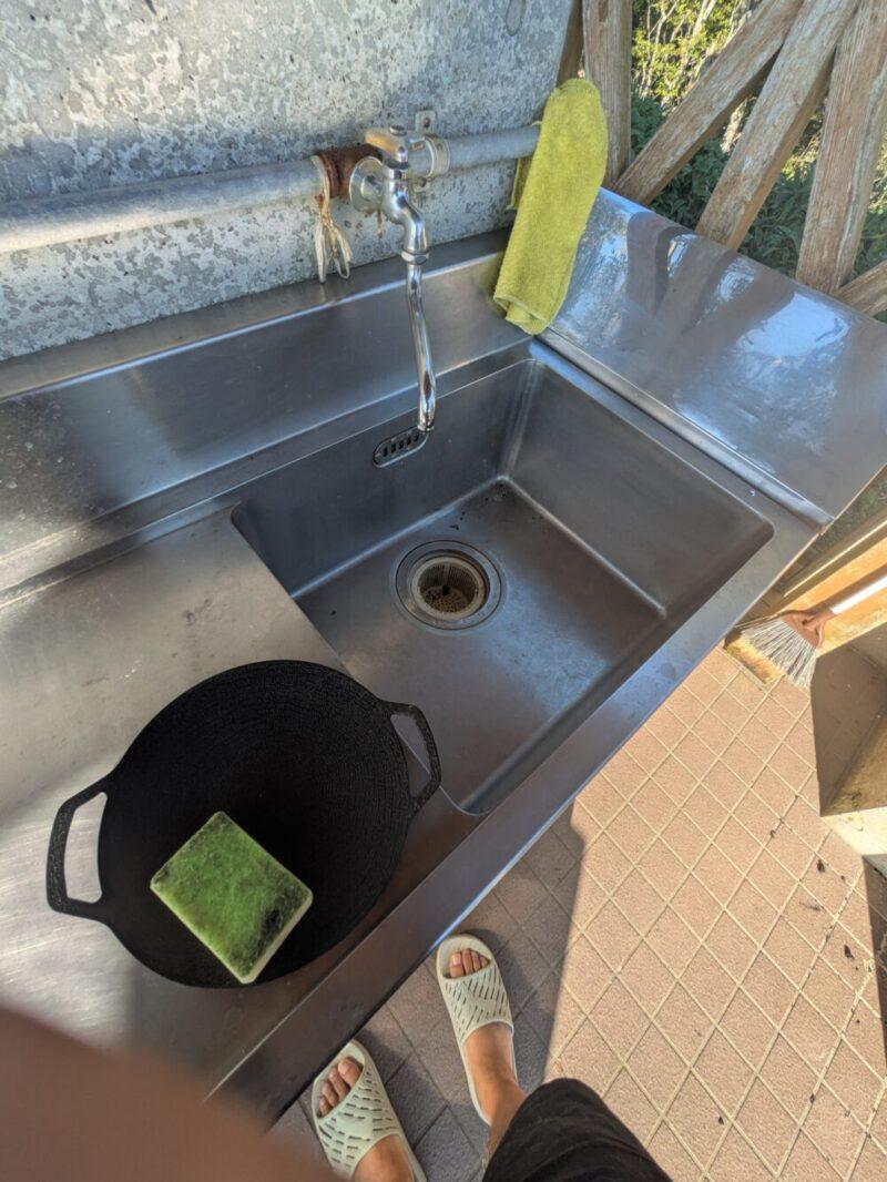 炊事場は屋根が付いていて蛇口も普通のタイプ